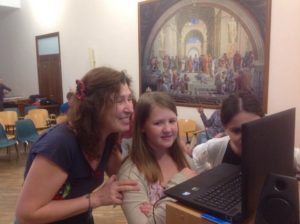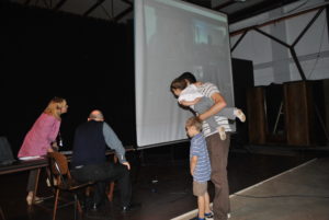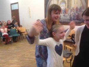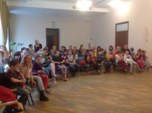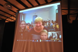Nelle foto alcuni momenti della conversazione Skype tra famiglie italiane e ucraine davanti al megaschermo del Centro Culturale Rosetum di Milano messo a disposizione da padre Marco Finco. L’accoglienza è iniziata!