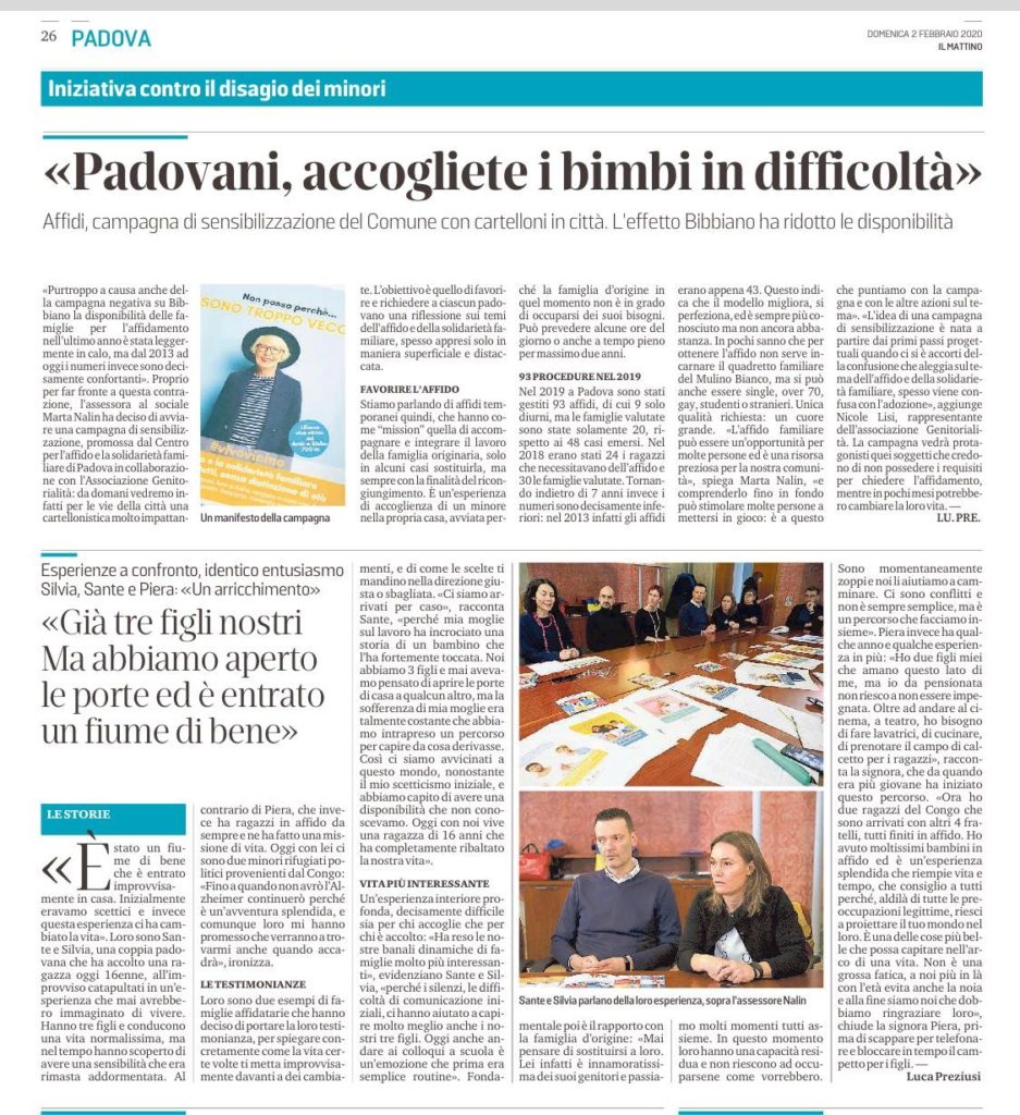 Padova, 1 febbario 2020: conferenza stampa sull’affido famigliare. Il racconto di Silvia.