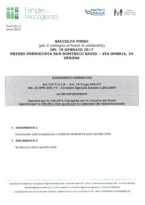 Veneto Documentazione relativa alla raccolta fondi del 29 gennaio 2017